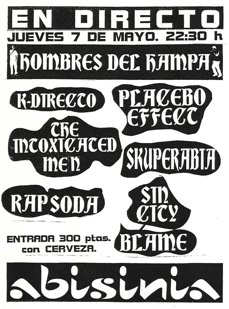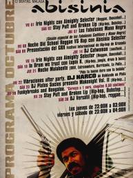 Haciendo honor a su carácter ecléctico, además de recitales de poesía, presentaciones de libros, rodajes o performances, el Abisinia organizaba conciertos de bandas pertenecientes a géneros muy diversos para 80 o 100 personas. Su declive llegó con la apertura de las salas de los polígonos, que tenían mucha más capacidad de aforo. Tampoco resistió la normativa municipal en cuanto a licencias de música en directo ni las multas relacionadas con esta misma causa.