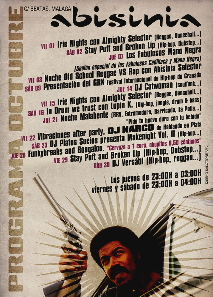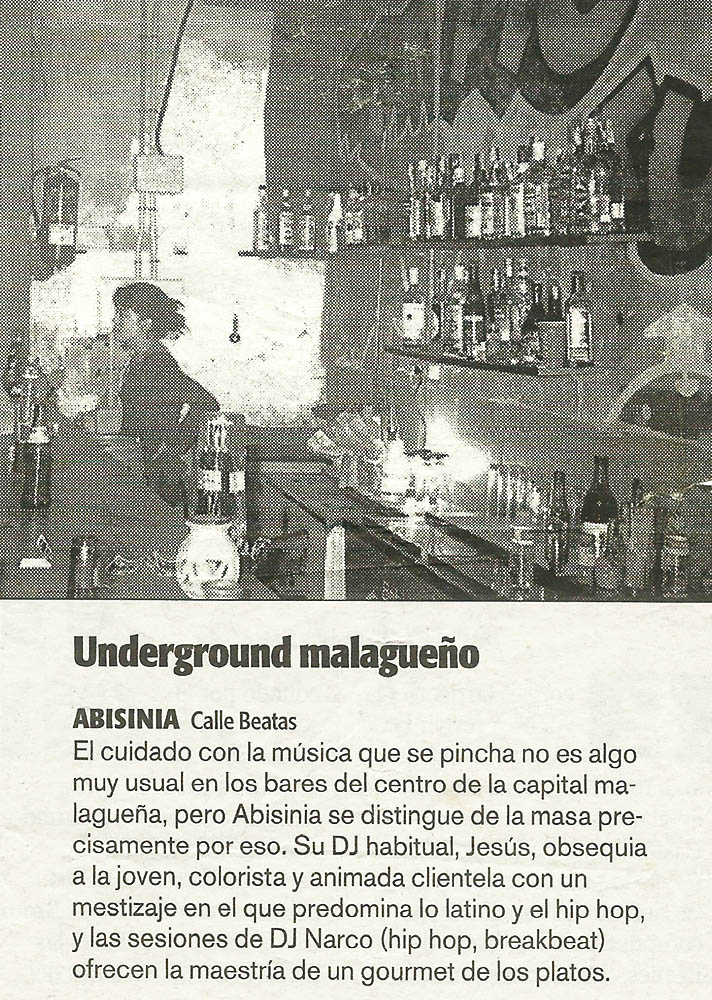 Calle Beatas, número 39. Cada vez que entres al Rocking Beatas, ten en cuenta que estás pisando el que fue hasta 2012 un bar de referencia en Málaga: el Abisinia. Era refugio de insignes raperos malagueños como los miembros de Hablando en Plata (cuando aún se llamaban Hombres del Hampa) o del Gordo Master (que actuó allí por primera vez), pero también de cualquier persona que buscase música de calidad más allá de criterios comerciales.